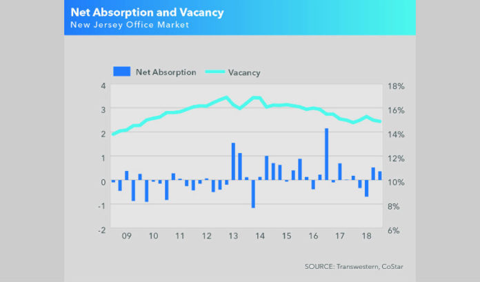 Big renewals and expansions in the suburbs led to improved vacancy levels and asking rents to go up in the third quarter for New Jersey’s office market, according to Transwestern‘s Third-Quarter 2018 Office Market Report.