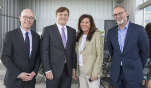 “It is through your commitment and wisdom that this former maritime facility is being transformed into a cutting-edge, world-class innovation district and manufacturing hub,” Fleming said.