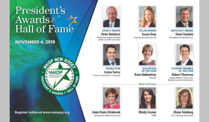 NAIOP New Jersey announced Wednesday it will honor the service and contributions of its volunteers at its Annual President’s Awards and Hall of Fame Dinner later this fall.