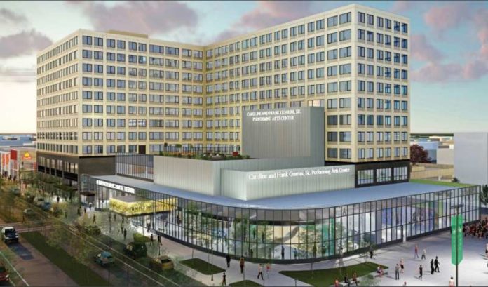 The 25,437-square-foot PAC will be comprised of a 492-seat theater, an orchestra pit and fly stage, a 100-seat recital hall, two large dance studios with exterior glass walls, a scenery fabrication shop plus storage, a grand lobby, and a special event space.
