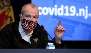 Gov. Phil Murphy, in a patriotic facemask.