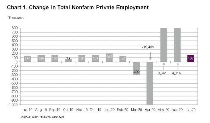 Private sector employment increased by nearly 170,000 jobs between June and July, according to the July ADP National Employment Report by Roseland-based ADP.
