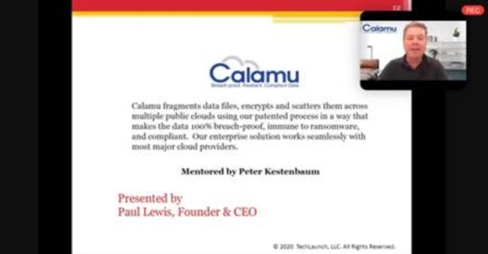 The winner was Calamu, a New Jersey-based data protection company that uses the cloud to make data breach-proof. Founder and CEO Paul Lewis gave the winning presentation.