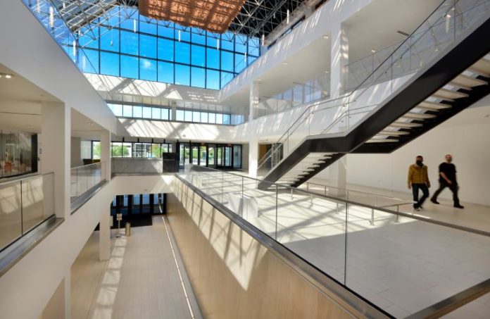 Saraceno said the goal was to create the most modern, amenitized urban/suburban office property in New Jersey through base building and landscape improvements. There is an entirely new façade and windows, new roof, completely reimagined site and landscape plan, and a more than 25,000-square-foot, newly designed amenity wing.