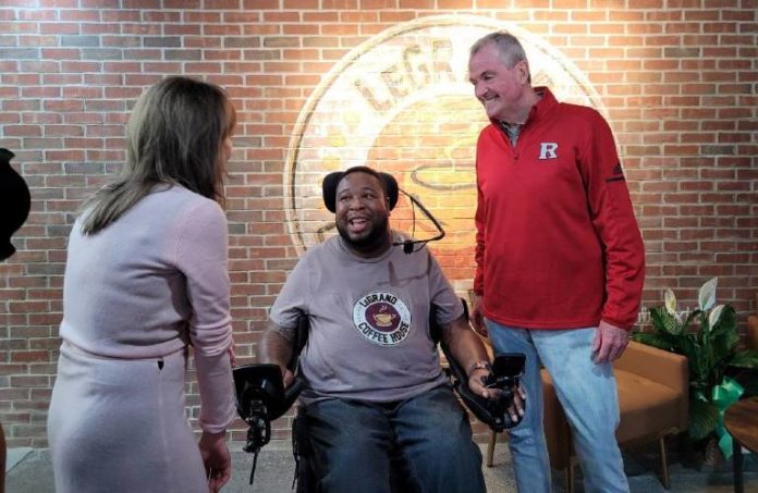 Rutgers University football coach Greg Schiano, athletic director Pat Hobbs and basketball player Geo Baker also were there.