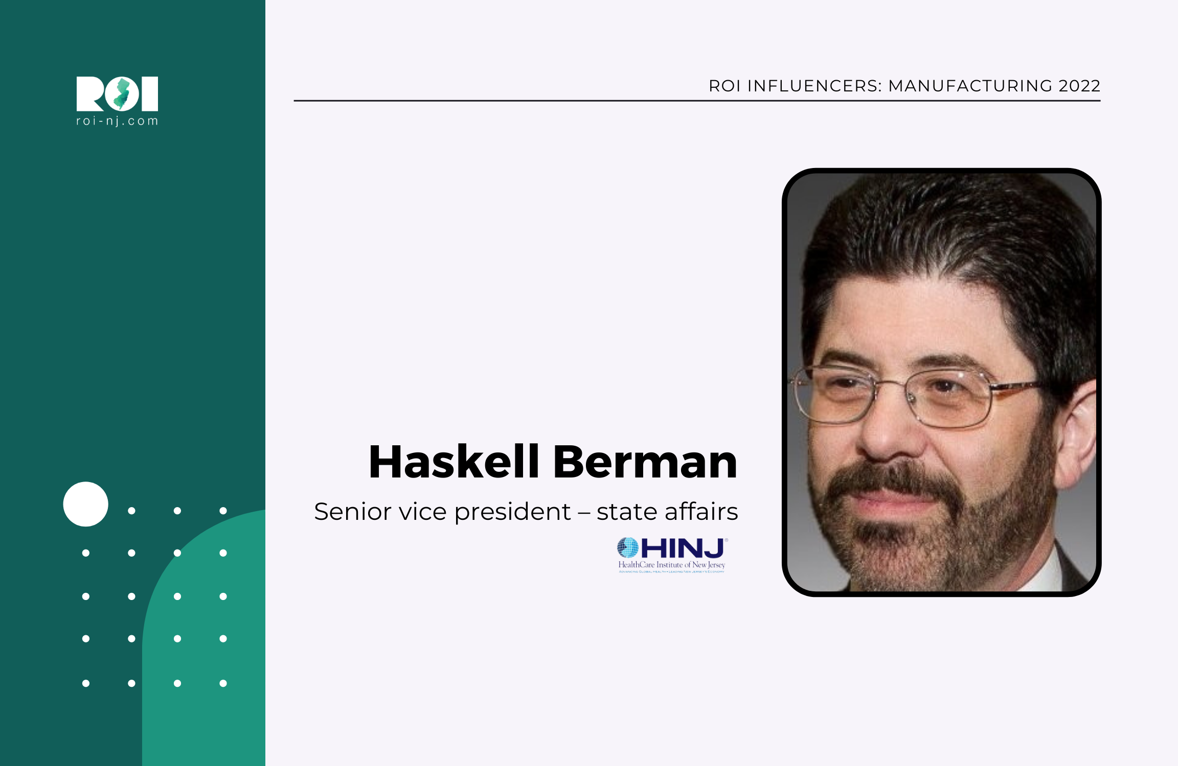 Berman’s role as a voice with the trade association that represents New Jersey’s research-based biopharmaceutical and medical technology industries is to keep the state committed to innovation and health. He also serves as a trustee of the New Jersey Society for Environmental, Economic Development, as well as the New Jersey Policy Research Organization.