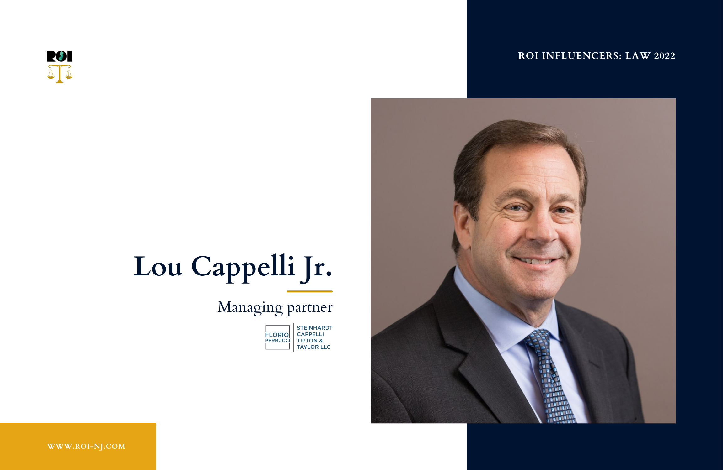 Head of firm’s Cherry Hill office, Cappelli has extensive experience in education, governmental and regulatory affairs, labor, lobbying, land use, real estate, family and personal injury law. … Was a solo practitioner in Camden County prior to joining the firm. … Cappelli recently won a major legislative victory by helping to pass a law that permits New Jersey’s wineries to ship their product out of the state. … He has served as prosecutor, planning board attorney or labor attorney in 11 municipalities. He has been on the Camden County board of commissioners since 2002, serving as director since 2006.