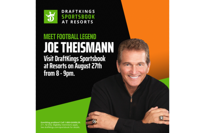 New Brunswick native and former Washington football quarterback Joe Theismann will be making a special appearance at DraftKings Sportsbook at Resorts Casino Hotel in Atlantic City from 8-9 p.m. Saturday.