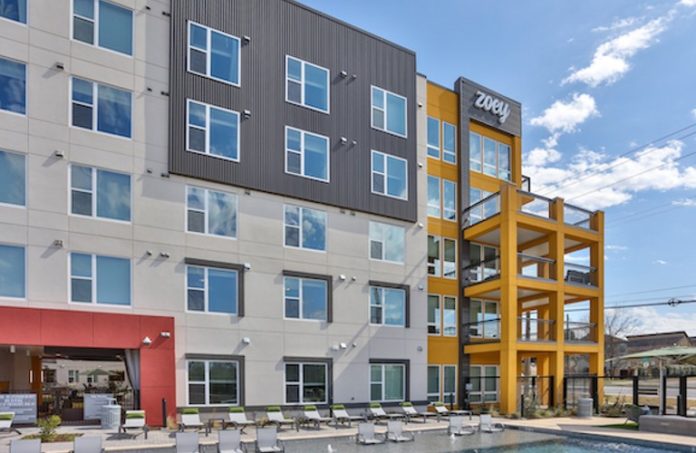 The Zoey development began leasing in early August and at the time of sale was 82% occupied. The community offers 306 luxury units, including 38 that are designated as affordable.