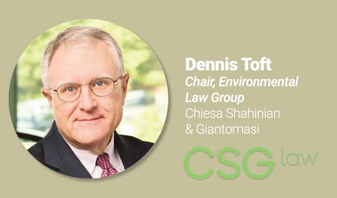 Dennis Toft is a renowned environmental lawyer who applies a keen understanding of science and the complexities of regulatory process when addressing the wide range of issues that his clients face. He provides counsel on all aspects of environmental law, including regulatory counseling, environmental due diligence, permitting, enforcement and environmental litigation, development/redevelopment and environmental insurance.