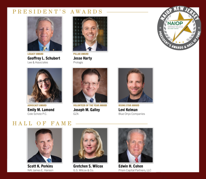 NAIOP New Jersey will celebrate the outstanding service and contributions of its volunteer leaders at the Annual President’s Awards and Hall of Fame Dinner on Nov. 7 at the Hilton Meadowlands.