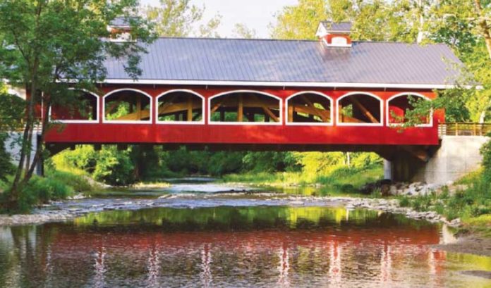 When Kurpis took on an initiative to connect some of the town’s numerous parks — connecting them to landlocked areas on the other side of the small river that gives the town its name — he dreamed of doing it in a way fitting of the community’s charm: a covered bridge.