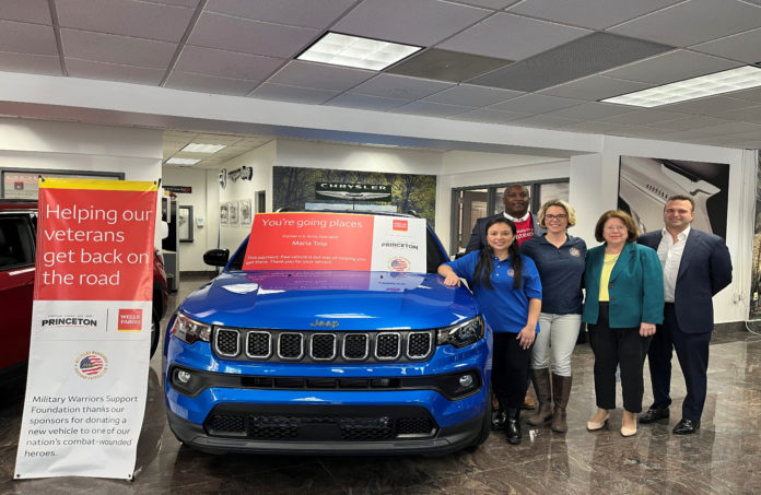 Former Army Spc. Maria Tola this week received a payment-free vehicle at Chrysler Dodge Jeep Ram of Princeton during a key ceremony attended by state Sen. Linda Greenstein. The vehicle was presented during Women’s History Month by Military Warriors Support Foundation’s Transportation4Heroes program, in collaboration with Wells Fargo and CDJR.