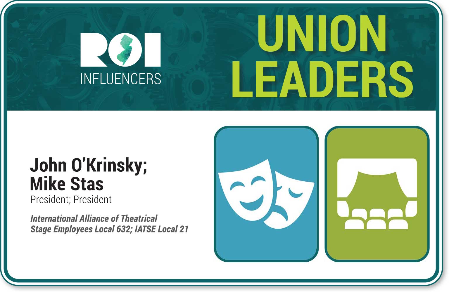 Want to see a show? Their two IATSE locals guide the union workers at MetLife Stadium, Prudential Center, New Jersey Performing Arts Center and a host of other prominent venues throughout the state. O’Krinsky succeeds longtime Local 632 leader Kevin O’Brien, who serves as president emeritus. Potential opportunities to grow at Fort Monmouth and Bayonne are immense.