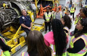 Women leaders and professionals from United took the girls on an airport tour that included the operations center, an aircraft hangar and onboard an aircraft itself.