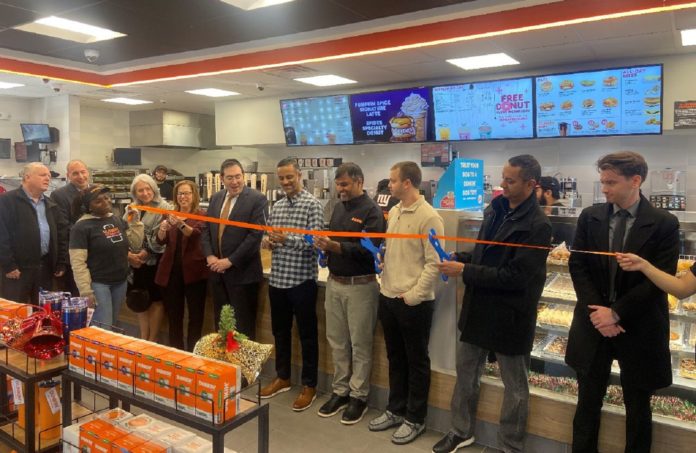 The Lakewood Chamber of Commerce recently celebrated the grand reopening of the Todd Plaza Dunkin’ in Lakewood with a ribbon-cutting and refreshments.