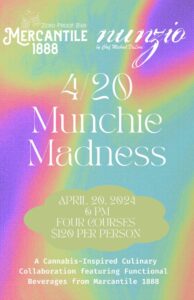 What can a restaurant do on a special occasion when it’s located in a dry town? Get creative with cannabis. Chef Michael DeLone of Nunzio is teaming with Mercantile 1888 Zero Proof Bar for a most unique event on 4/20, April 20.