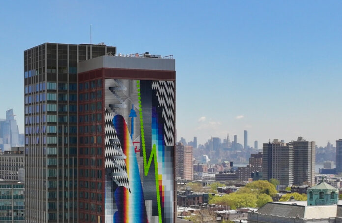 To infuse an artistic flourish into the urban landscape, Urby has commissioned a striking mural on the south side of the building by contemporary Argentinian-Spanish artist Felipe Pantone, whose kinetic work explores dynamism, transformation, digital revolution and themes related to the present times. Composed of bold geometric patterns, gradients, vibrant colors and extending all 25 stories of Journal Square Urby, the mural is Pantone’s largest artwork to date.