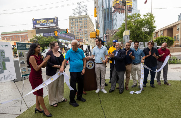 Situated along Bergen Avenue between McGinley Square and Journal Square, the redesigned public space boasts an area for community events, traffic safety upgrades, a newly planted 30-foot oak tree and native greenery. Additional improvements include: