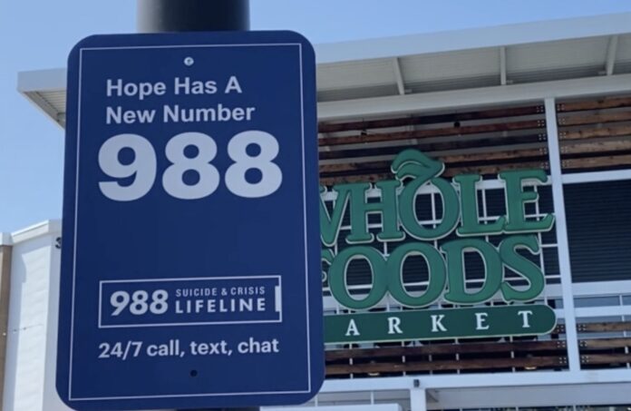 The reflective signs, placed in high-traffic areas, highlight the ways to reach the 988 Lifeline. The service provides free and confidential emotional support to those in suicidal crisis or emotional distress 24/7 via phone, text and chat.