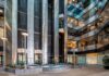The 3,000-square-foot lobby serves as the centerpiece of The Atlantic Club’s artistic vision. Rising 18 feet, the marquee entrance features soaring glass and textile installations inspired by ocean waves, blending architecture and art to create a museum-like experience.