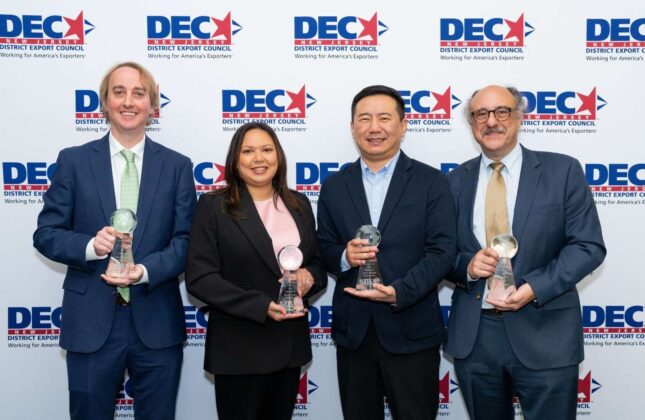 This year’s honorees included: Rashid Dzhu-Tian-Tsei of Alnima Natural Solutions as New Exporter of the Year; Howard Kidorf of Pioneer Consulting as Services Exporter of the Year; Alexis Capik of Spectra Colors Corporation as Minority/Diverse Exporter of the Year; and Ted Kaiser of Dock 7 Materials Group as Exporter of the Year.