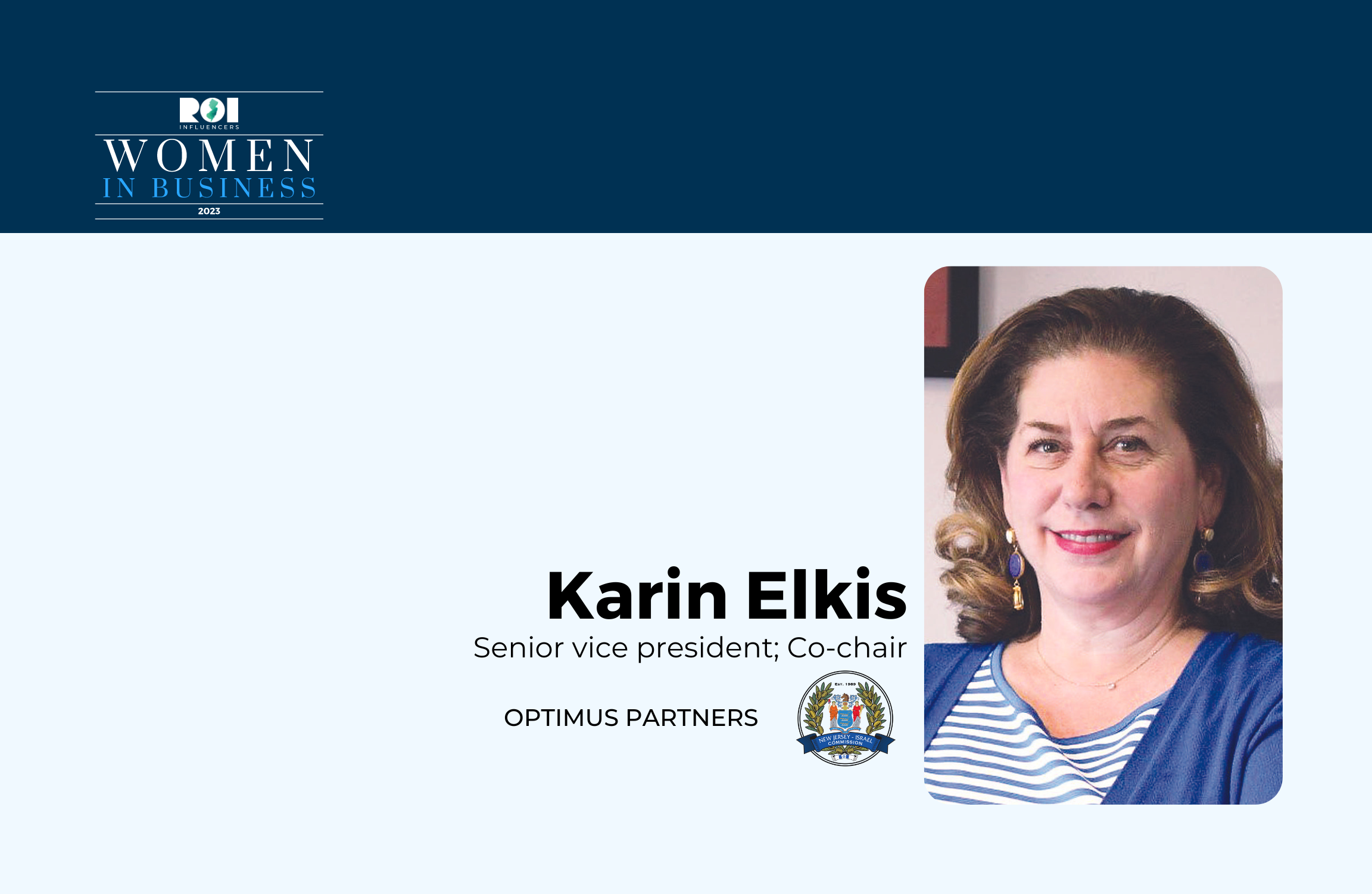Is dynamic in the work she does at Optimus Partners and as a leader of the N.J.- Israel Commission.
